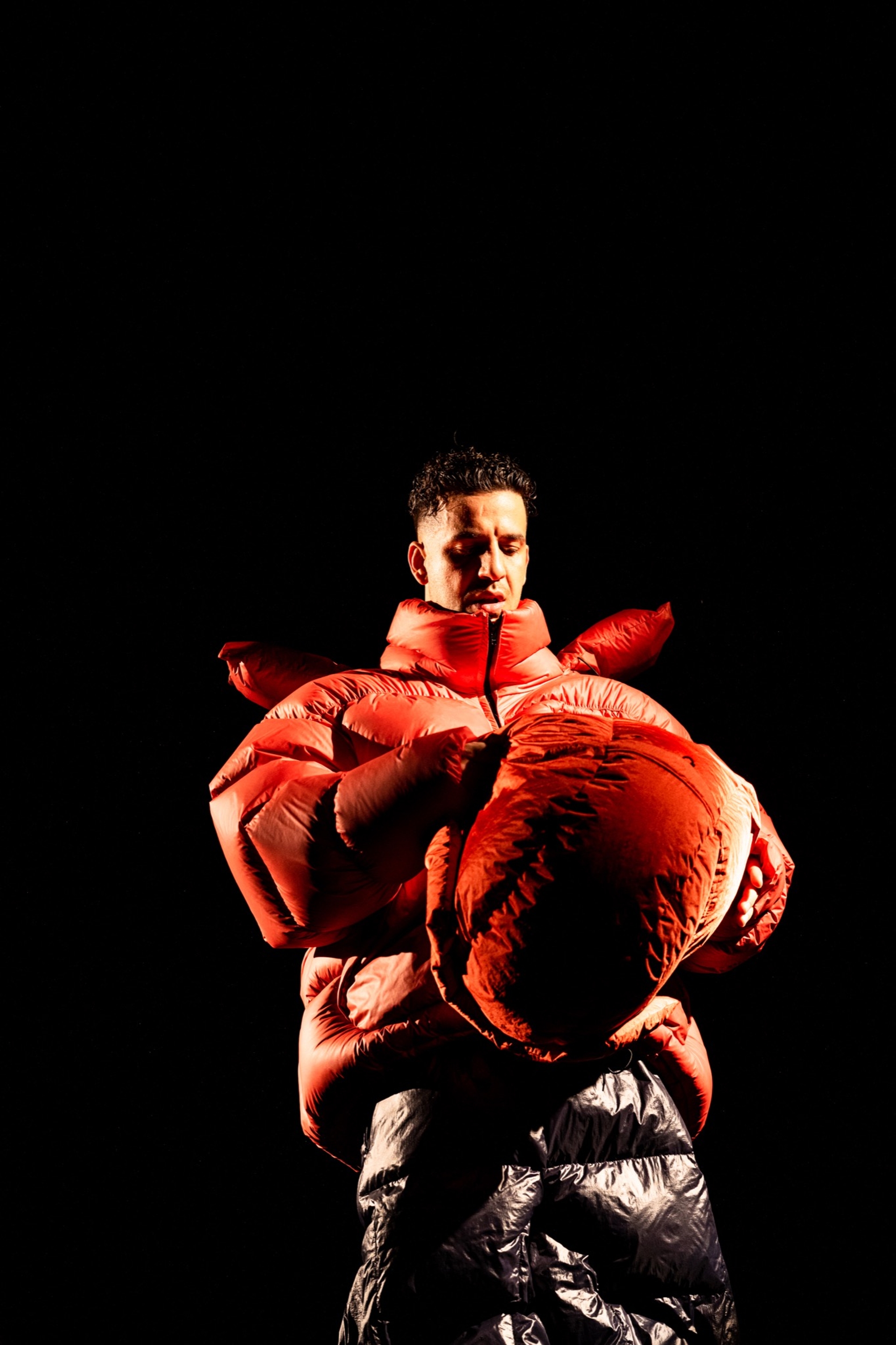 Covid-19 regulations have complicated Zhang’s plans to move to the YEEZY campus in Wyoming full time, but he and Ye are reunited again in spirit in 032c Issue #40, albeit in separate features. To celebrate Zhang’s work in the winter issue, we wrapped our favorite German rapper, Ufo361, in zany Zhang puff and sent him soaring through the air. To accompany the shoot by Michael Anthony, we asked writer Charlie Fox – expert on all things monstrous and alien – to draw up an unofficial PRODUCT REPORT.