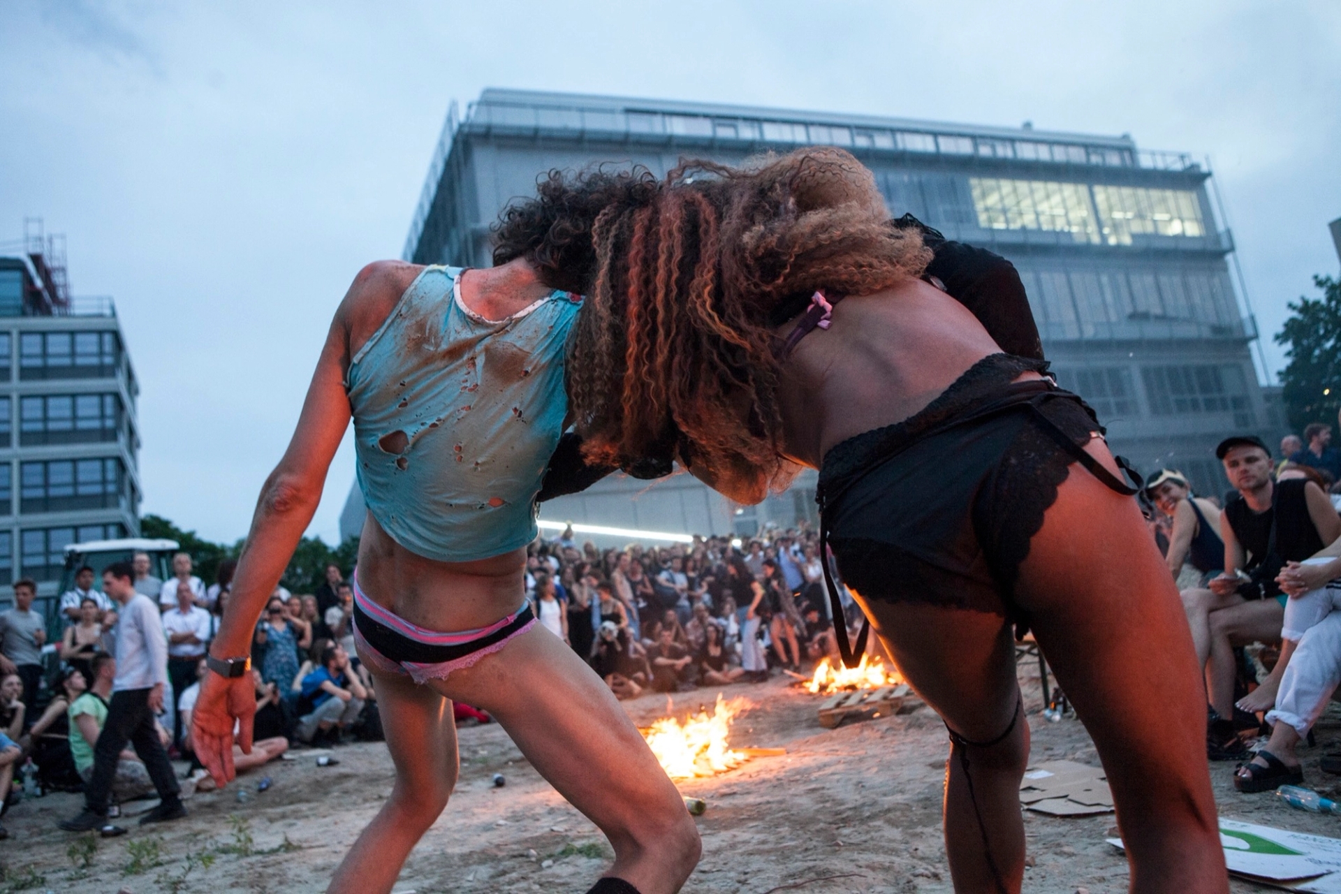 At times we managed to put our finger right where it hurts. When we invited Josh Johnson and Patrick Belaga to do a dance and music performance at the historic Baerwaldbad, a public pool Kreuzberg that closed 2017, we unwittingly ended up in the center of a contentious lawsuit – a paralyzed political process involving the local administration, the authorities, and a non-profit. When we announced our event, local politicians took to Twitter to share their views on the situation and vent their anger. The police eventually barricaded the doors the day of the event to prevent us from entering, but we had already smuggled in the performers early that morning. We ended up live streaming the performance from inside the deserted Art Nouveau pool as the audience watched on the sidewalk.