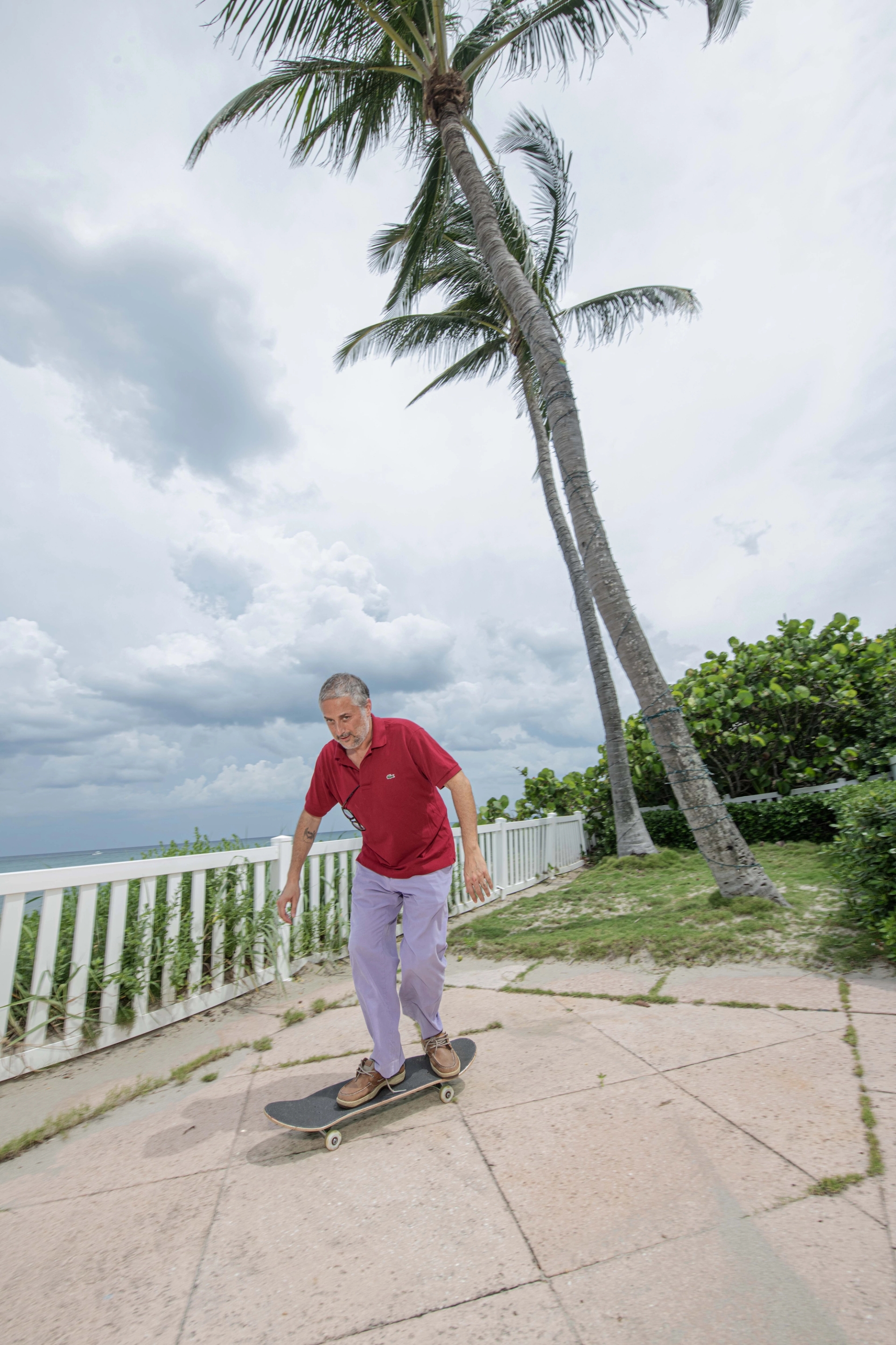 Harmony Korine skateboarding in Miami. “I still watch skate videos every day and keep up with all of the skaters,” Korine says of the role skateboarding still plays in his life. The oceanside metropolis that Korine calls home has proven to be both a fertile breeding ground for creativity and a means to escape a technology-driven process