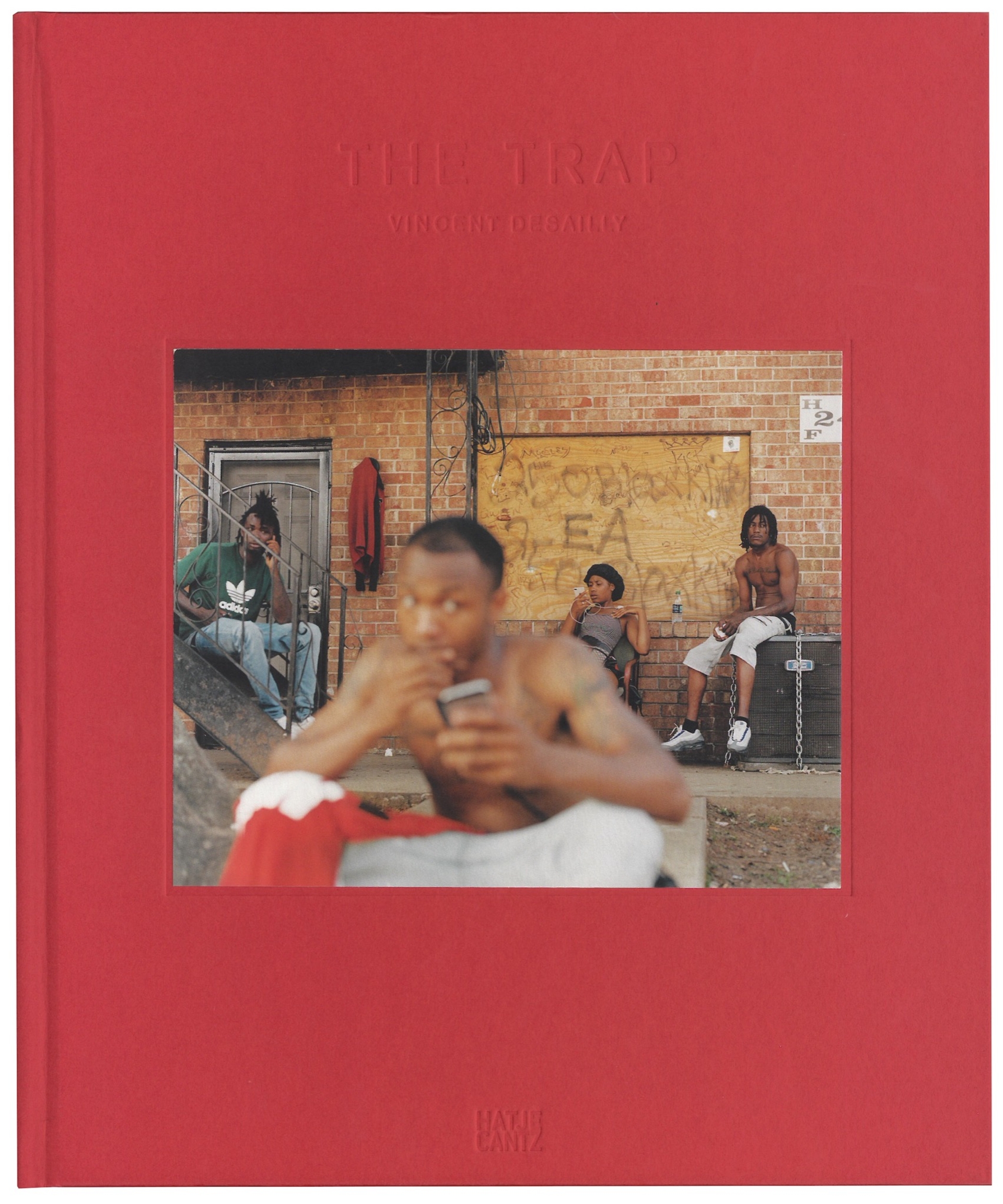 The landscape photographs that set the stage for Vincent Desailly’s The Trap betray two distinct worlds. In the first, ethereal golden light cascades through the limbs of towering trees, illuminating a patch of bronze-colored pine needles on a suburban Atlanta street. Six pages in, preceded by a reticent definition of the terms “trap,” “trap house,” and “trap music;” a partial map of Atlanta bleed printed on facing vellum pages, and an excerpt on the origins of Trap music borrowed from The Autobiography of Gucci Mane, Downtown Atlanta’s imposing skyline forms a counterpoint to the book’s initial mise-en-scène. The converging lines of perspective indicated by the freeways that lead in and out of the black metropolis are flanked by bushes that taper from view at the center of the image, where the city springs out of the ground like pillars of refined gemstone. Nature, from this viewpoint, has no place in the city. By contrast, its extensive sprawl – the backdrop for Atlanta’s trap culture that is the subject of the book – is lush, verdant, and overflowing with foliage.