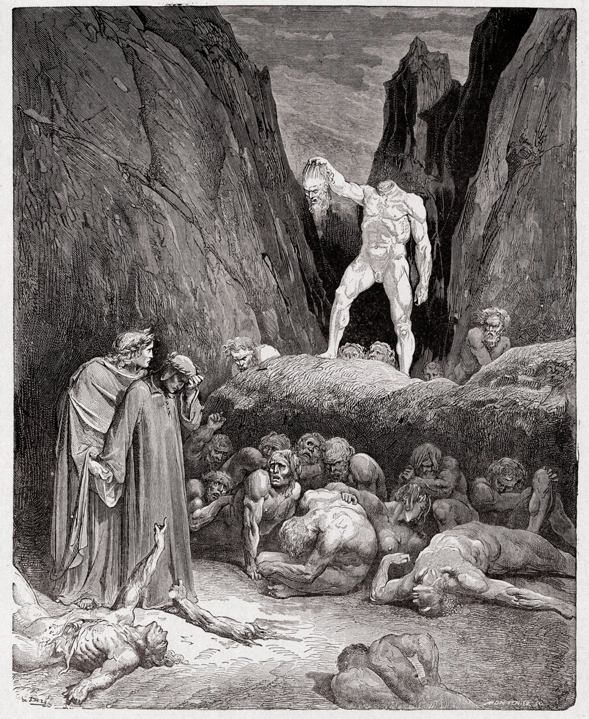 Gustave Doré, The Divine Comedy by Dante Alighieri, Inferno, Canto 28: The Severed Head of Bertrand de Born Speaks to Dante, 1885